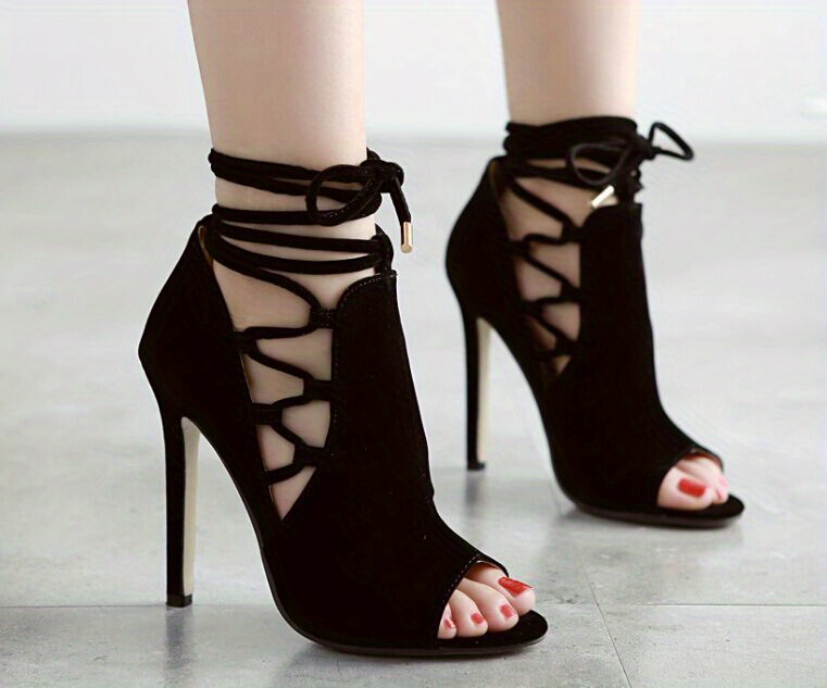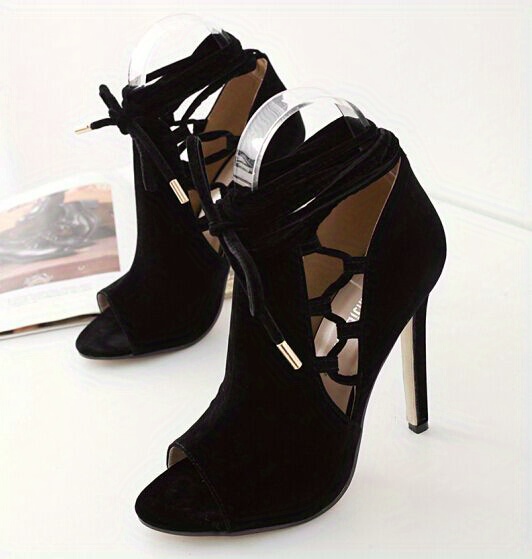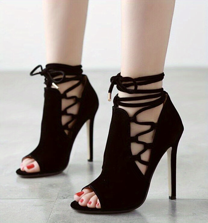 Chic Ultrahigh Stiletto Heels, Sleek Open-Toe & Lace-Up Ankle Support, Perfect for Autumn Evenings